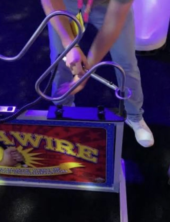 Megawire is the ultimate test of patience, whole body steadiness, and hand-eye co-ordination. Players attempt to navigate the handheld ring through 12 linear feet of tube on this massive 4 feet tall by 4 feet wide game